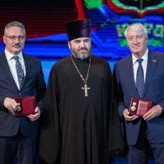 Последний выступающий, кстати, по поручению и благословению митрополита Павла (он был в командировке в Москве) вручил медали Ханты-Мансийской епархии РПЦ им. Святителя Нектария, архиепископа Тобольского и Сибирского депутату Госдумы РФ Александру Сидорову и ректору СурГУ Сергею Косенку.