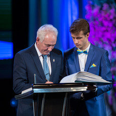 Рассказ ведущих сопровождался кадрами видеохроники. Затем настало время для приветственных речей. Первым на сцену поднялся легендарный экс-глава Сургута, а ныне – возглавляющий Попечительский совет СурГУ депутат Государственной Думы РФ Александр Сидоров. «Даже не верится, что прошло 25 лет, – сразу же заметил Александр Леонидович. – Конечно, для университета эти годы были не только самыми сложными, но и, судя по всему, определяющими, потому что за короткий срок надо было создать всё, начиная с материальной базы, с первого профессора, с первого преподавателя, с первого студента, с первой зачётки, и затем последовательно, шаг за шагом, развиваться. Университет явился ещё одним признаком осёдлого образа жизни, причём жизни полноценной, полнокровной. Благодаря университету молодёжь поверила, что Сургут – это то место, где можно получать образование, работать и жить. Спасибо ветеранам и тем, кто в течение 25 лет, присоединяясь к этому проекту, шёл с нами. Университет – это навсегда, это надёжный гарант того, чтобы уверенно смотреть в будущее».