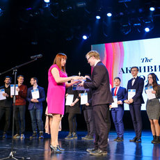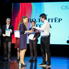 Потом коллектив института с праздником тепло поздравила директор ИЕиТН Юлия Петрова. А затем, собственно, прошла церемония оглашения имён претендентов на ту или иную номинацию, вручение благодарственных писем и желанных статуэток, перемежаемое концертными номерами.