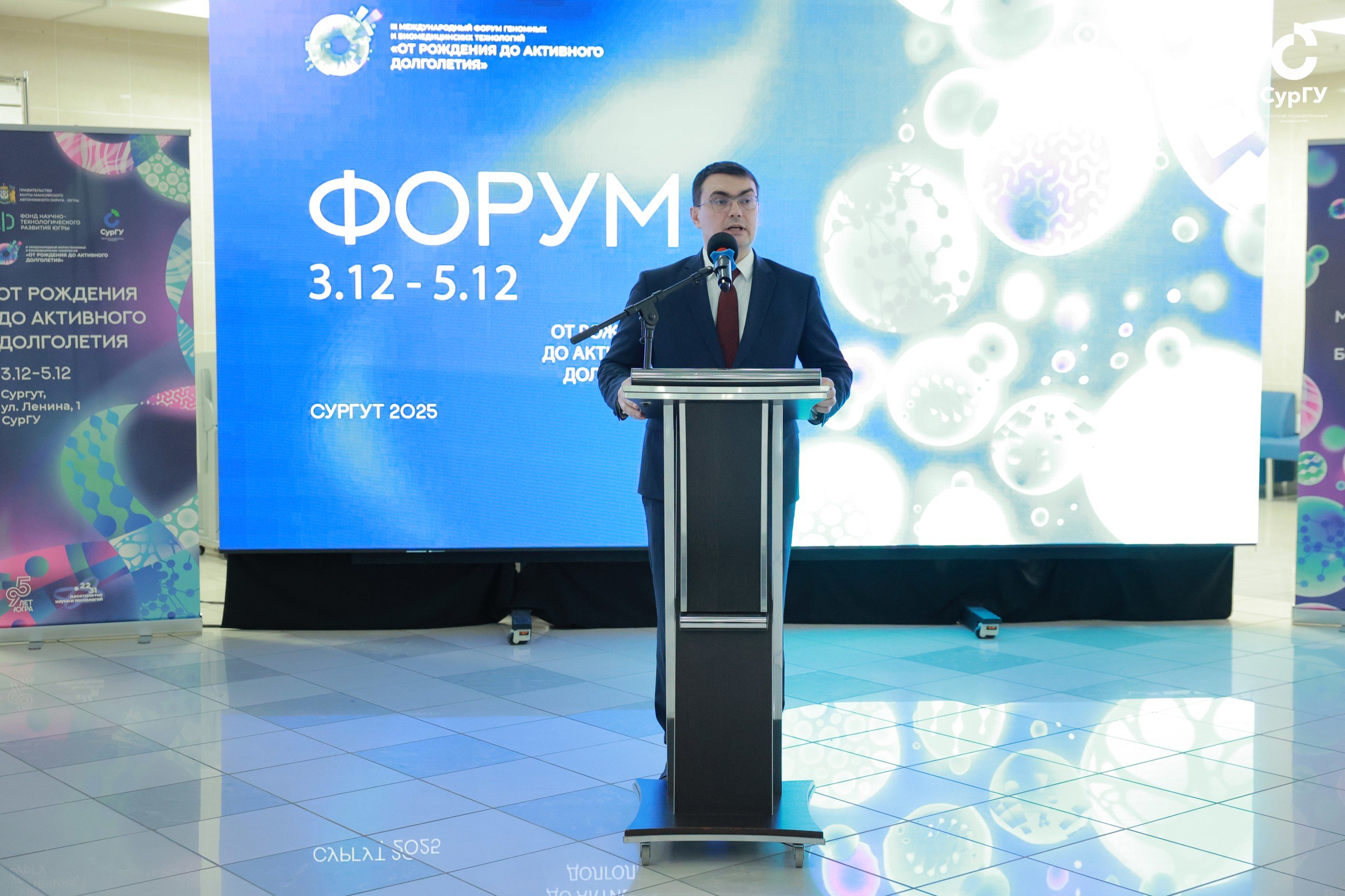 Завершился III Международный форум геномных и биомедицинских технологий «От рождения до активного долголетия», прошедший в стенах Сургутского государственного университета с 3 по 5 декабря. Мероприятие собрало около тысячи участников из разных уголков планеты, среди которых ученые, медики, представители бизнеса, аспиранты, студенты и нутрициологи (эксперты в сфере питания и здорового образа жизни). А также все, кто готов был поделиться опытом и открыть для себя что-то новое в области биомедицины, геномики и биотехнологий. Организаторами выступили Правительство Ханты-Мансийского автономного округа – Югры, Фонд научно-технического развития Югры и СурГУ при участии консорциума «Югра-Ген».
