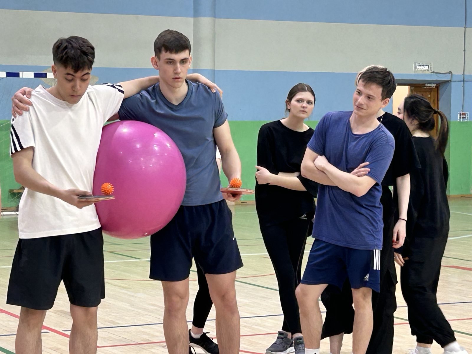 Студенты соревновались в быстроте, ловкости, координации, слаженности командных действий, демонстрируя умения и навыки в выполнении различных заданий, в том числе передвижение с нейроскакалкой, упражнения с фитболами и теннисными мячами.
