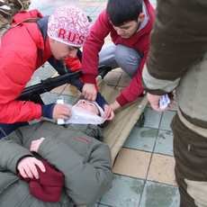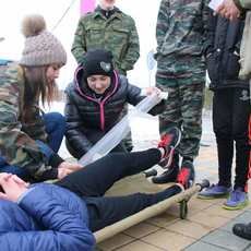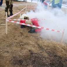 Далее участники оказывали первую медицинскую помощь раненому и несли его на носилках до следующего тура - стрельбы. В этом испытании нужно было постараться. Не попал - стреляй снова. Попал - бежишь на следующий этап, где спускаешься по канату при поддержке товарищей. Как здесь важна была работа в команде, сплоченность и полное доверие! Далее - минное поле, через которое нужно как можно быстрее пройти, не задев "мины" - шины.