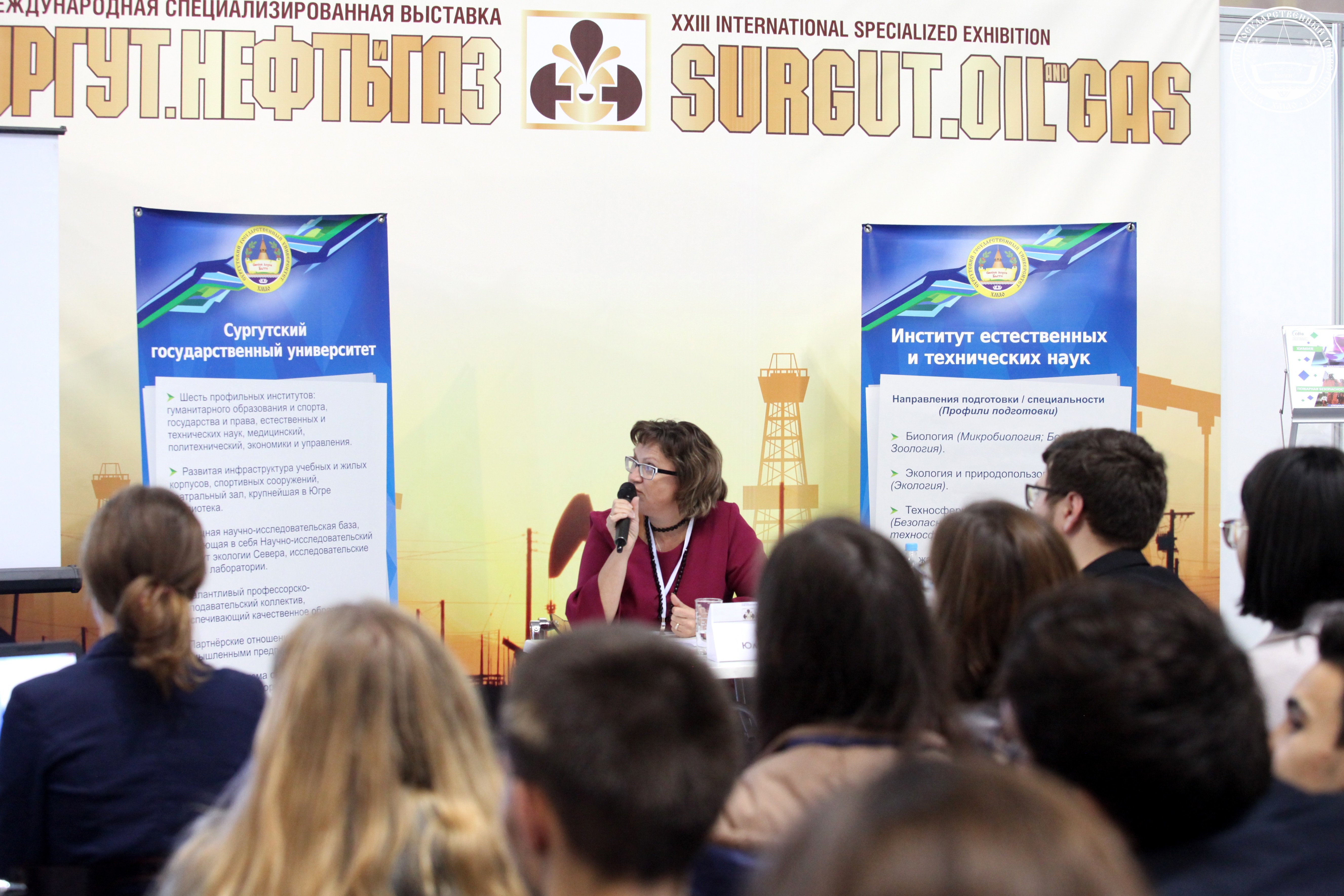 В течение трех дней, в спорткомплексе «Энергетик» работала XXIII Международная специализированная выставка «Сургут. Нефть и газ», давно ставшая ежегодной. В этом году в ее рамках около пятидесяти школьников 11-х классов приняли участие в презентации одного из вузов родного города, которую подготовила и провела директор Института естественных и технических наук (ИЕиТН) Сургутского госуниверситета Юлия Петрова.