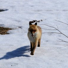 «…12-й день. 16.04. Весь день провели в дороге. Из приятного: встреча с дикими животными: у обочины мышковала лисица (ныряла в снег за мышами — прим. авт.). Не знаю, чем ее привлекли наши фотографы, но она побежала в их сторону и прошлась буквально в метре от них. Удалось сделать хорошие кадры.