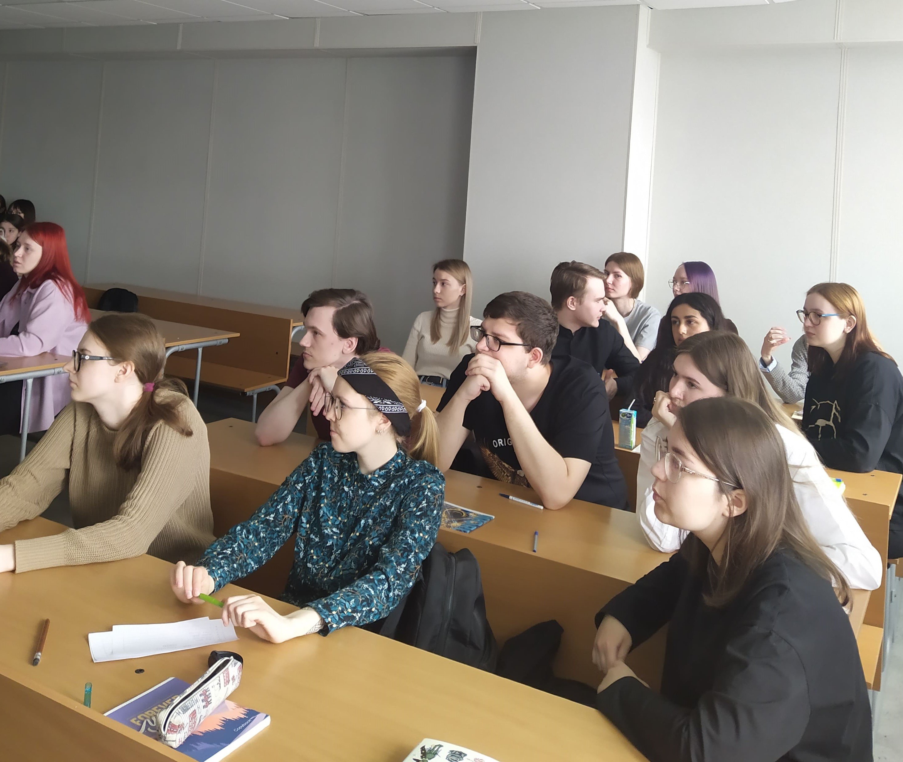 Дружная командная работа студентов разных курсов позволила быстро и креативно решить сложные интеллектуальные задания. Участвовали команды «Royals», «Trali-vali house», «Pancakes», «KIM SEOKJIN», «Cucumber». Первое место заняла команда «Pancakes», второе место – «Cucumber», третье место – «Trali-vali house».